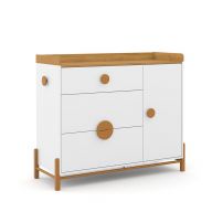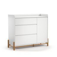 Transforma-se em mini cama e possui pés exclusivos em madeira